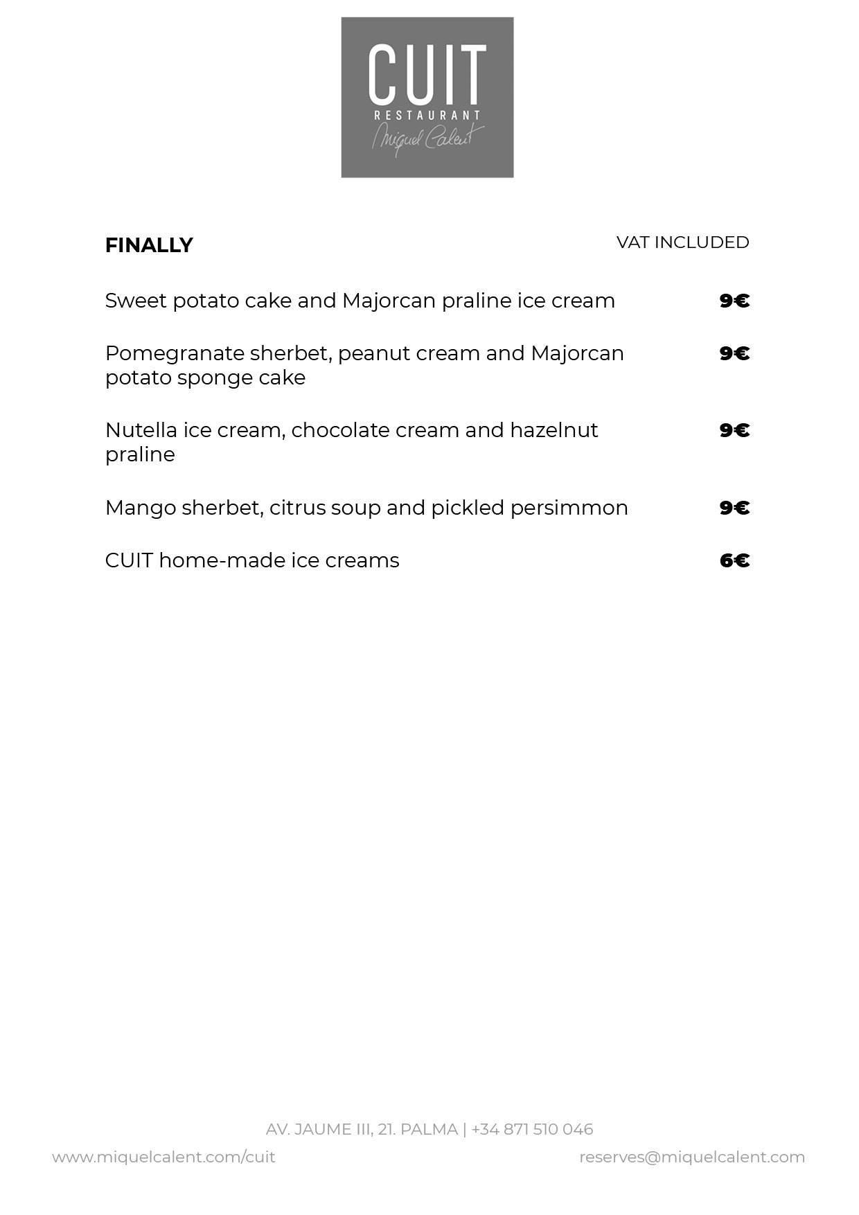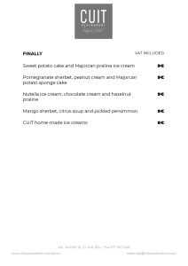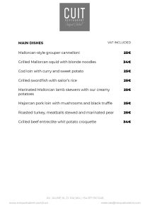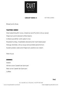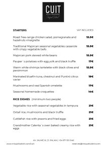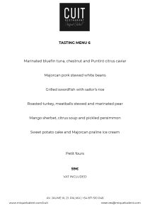Cuit restaurant is located on the eighth floor of Nakar Hotel in Palma. With impressive views over Palma bay, the Cathedral and the ancient town, Cuit is the first personal project of Miquel Calent in Palma.Traditional and seasonal craftsmanship kitchen, inspired in Majorca's gastronomical tradition with Mediterranean influence and refurbished with new culinary tendences to bring both modernity and antiquity recipes.