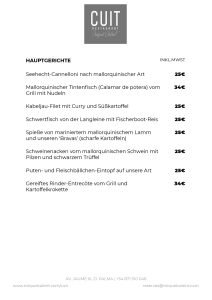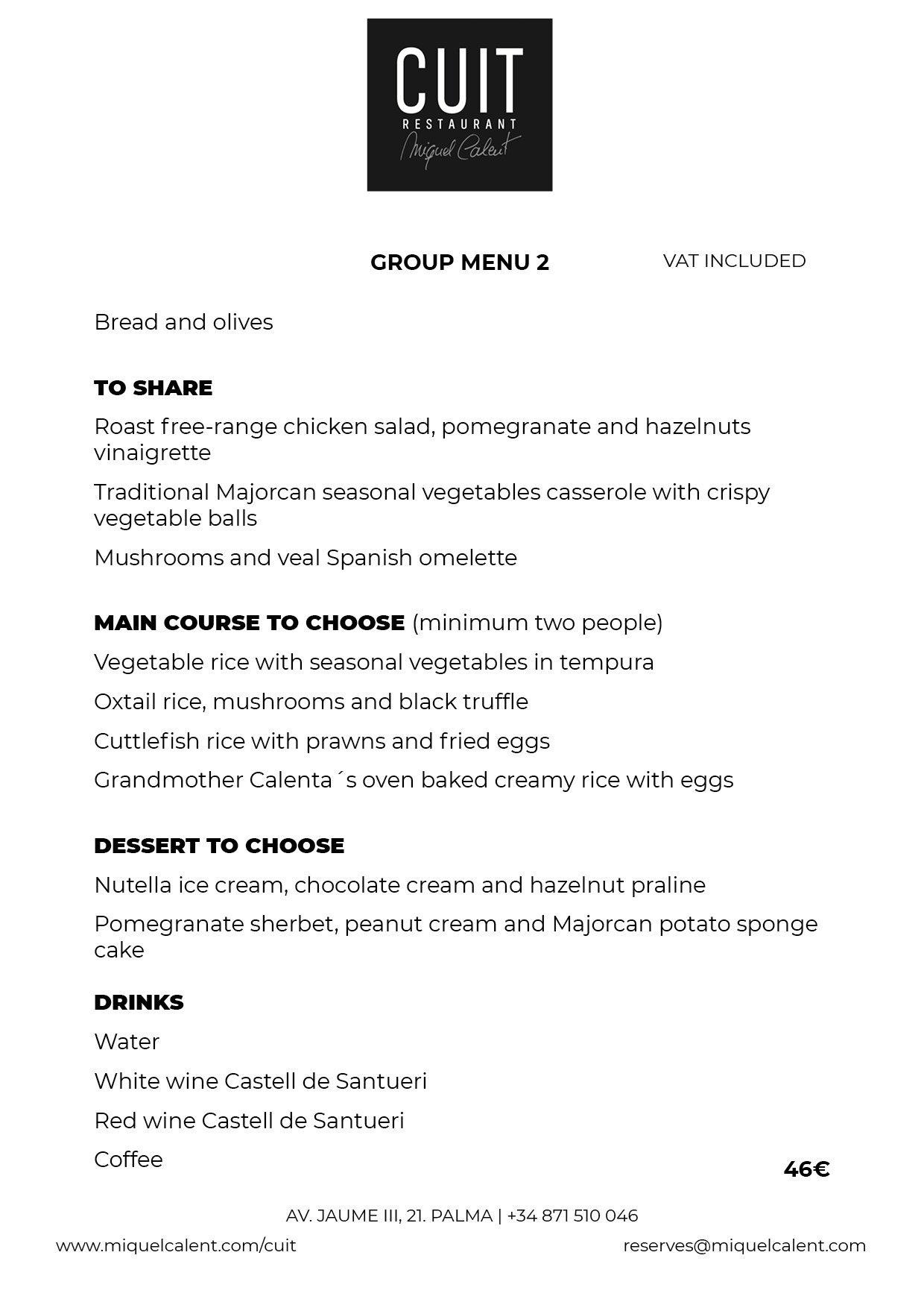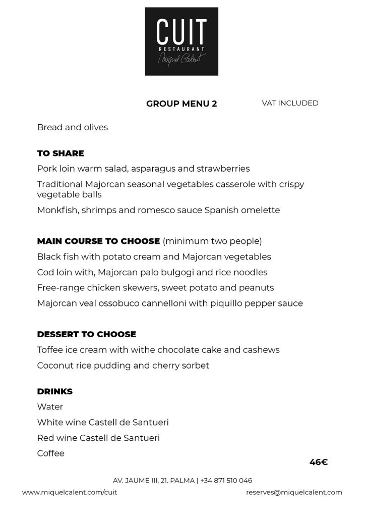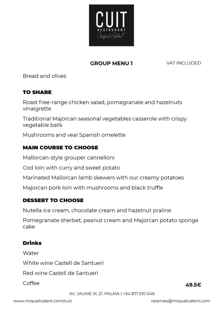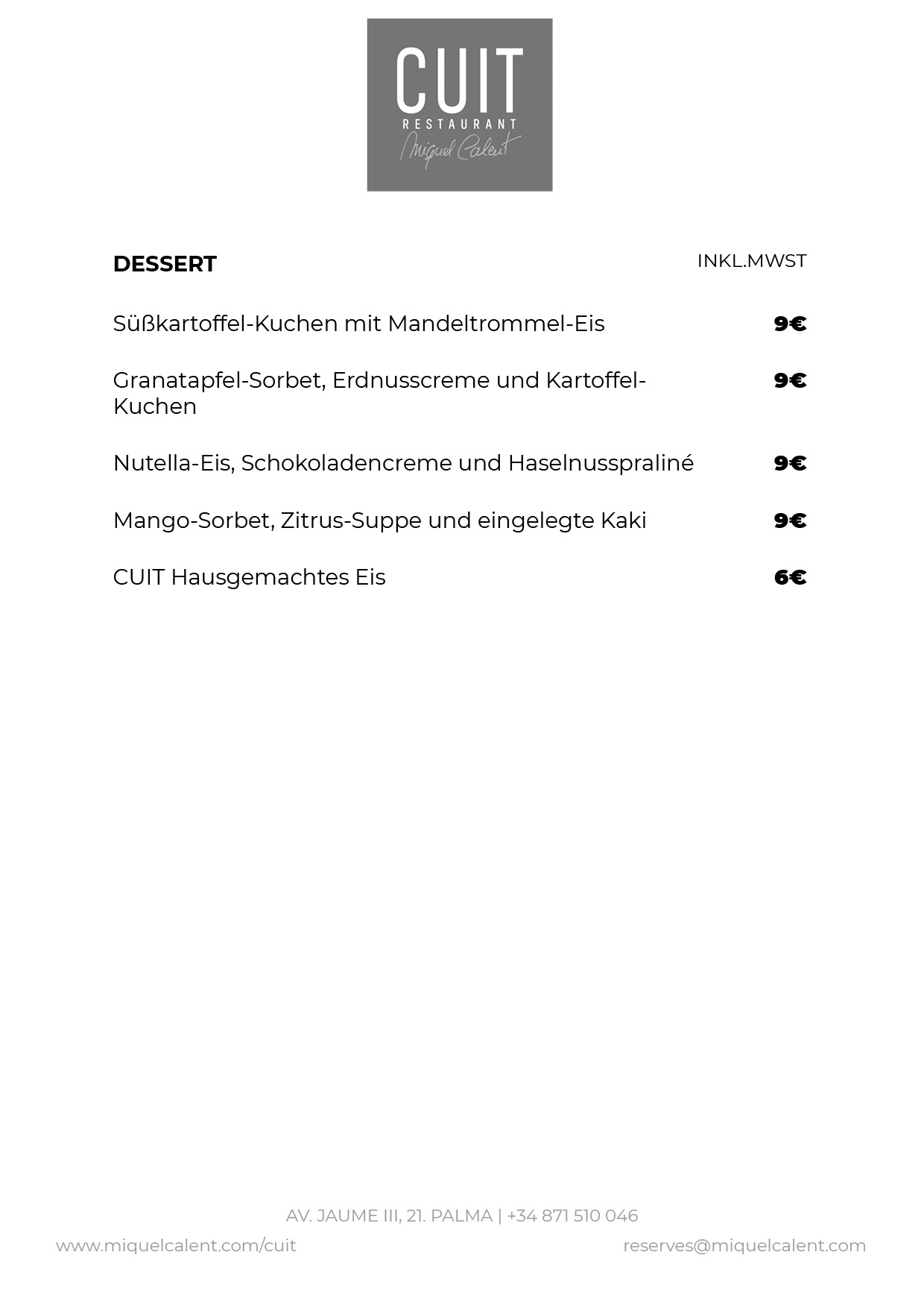 In der achten Etage des Nakar Hotels befindet sich das Restaurant Cuit. Mit einem atemberaubenden Blick auf die Bucht von Palma, die Kathedrale und die Altstadt ist Cuit das erste Projekt von Miquel Calent in Palma. Traditionelle und saisonale Küche, inspiriert von der gastronomischen Tradition der Insel und – natürlich – mediterranem Einfluss und zu gleichen Teilen verfeinert mit aktuellen kulinarischen Trends und wieder gewonnenen traditionellen Rezepten.