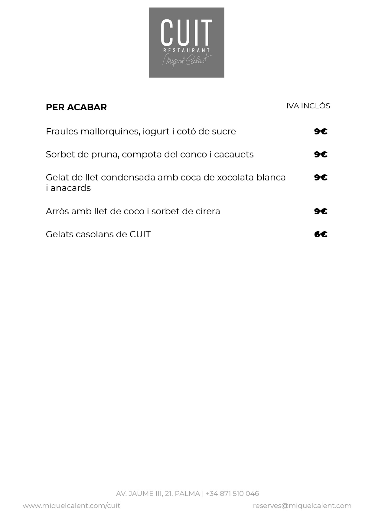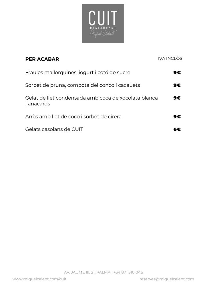 A la vuitena planta del Nakar Hotel trobaràs el restaurant Cuit. Amb impressionants vistes a la badia de Palma, la Seu i la ciutat antiga, Cuit és el primer projecte de Miquel Calent a Ciutat. Cuina artesanal i de temporada, inspirada en la tradició gastronòmica illenca, amb influència –com no?- mediterrània, reformada amb les noves tendències culinàries a parts iguals amb la recuperació de receptes de l’antigor